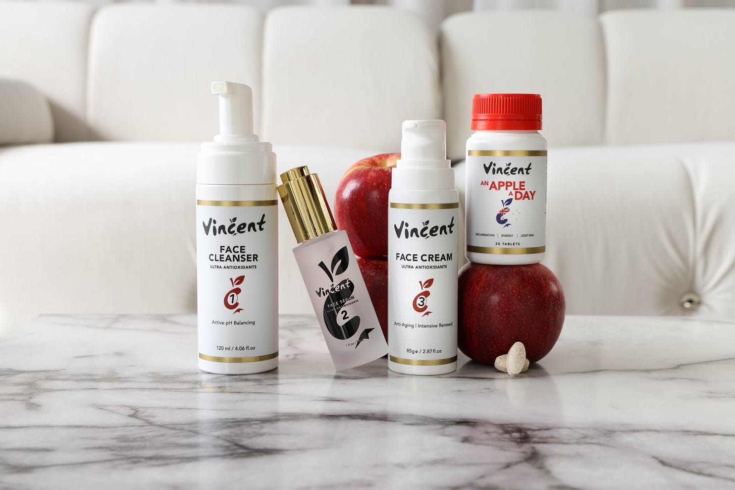 And a streamlined skincare system powered by the same apple-derived phenolics, designed to protect and repair skin from the outside in